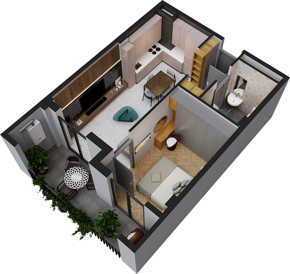 საცხოვრებელი ფართობი: 44,88 მ2